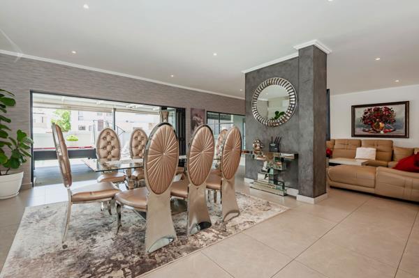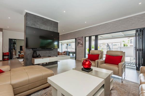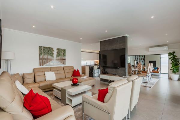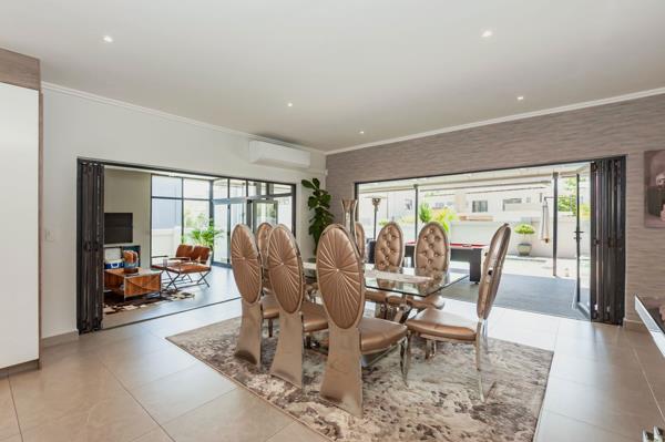 Exquisite Upmarket 5-Bedroom Residence. Exclusive mandate.Step into sophistication with this exceptional home offering five luxurious, all en-suite bedrooms. A grand entrance hall welcomes you into spacious open-plan living areas that flow seamlessly between the lounge, dining, and entertainment spaces with built in braai and bar section all framed by elegant stackable doors leading to the outdoor entertainment area overlooking a sparkling pool.