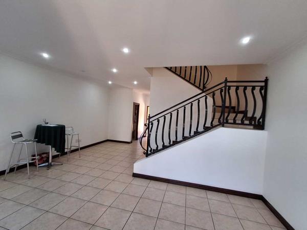 Downstairs is home to a marvelous kitchen, lounge and dining, guest toilet. The kitchen with granite tops and space to fit all your kitchen appliances. From the lounge you can walk out to your own private garden with patio and built-in braai