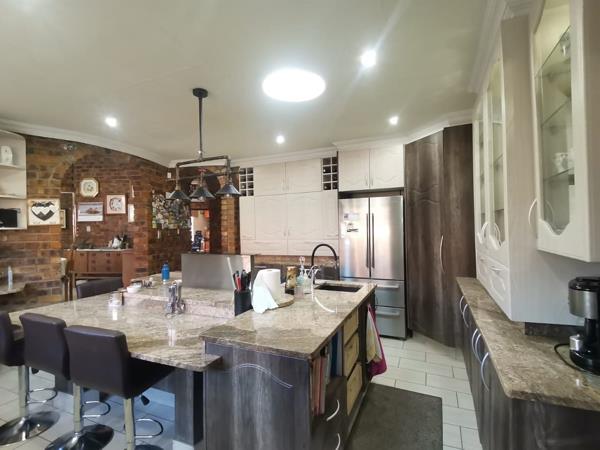 The ultra-modern and spacious gourmet kitchen boasts a 6-plate gas stove, under-counter oven, central island, and a breakfast nook. There is also a spacious scullery and laundry with ample built-in cupboards.