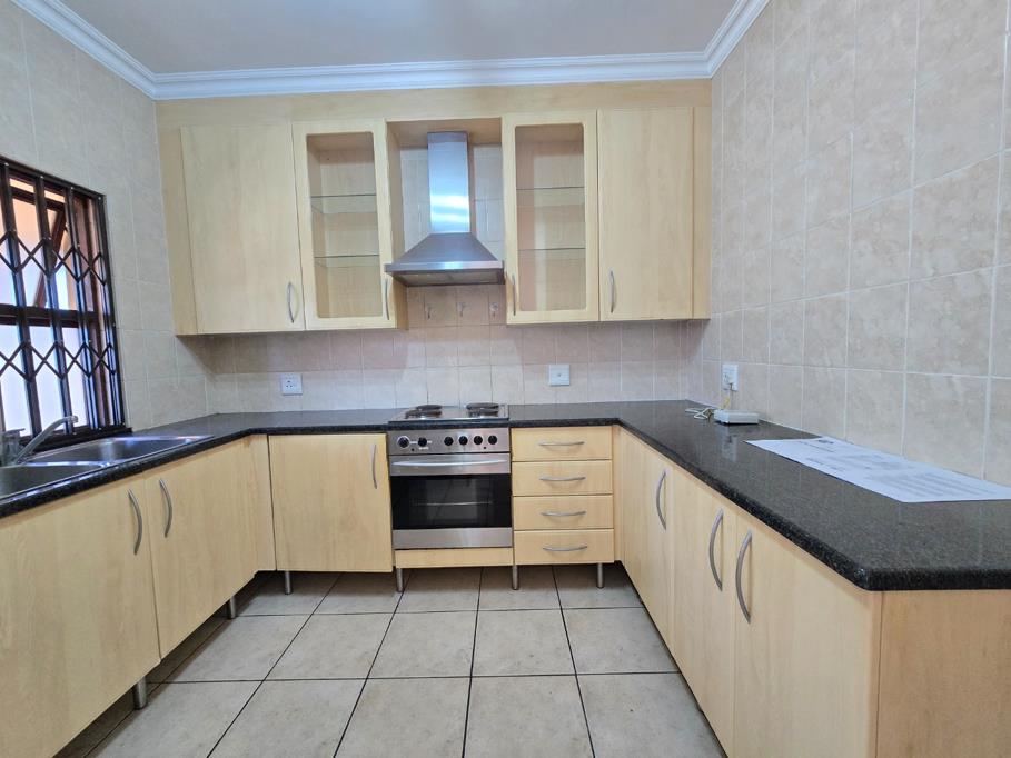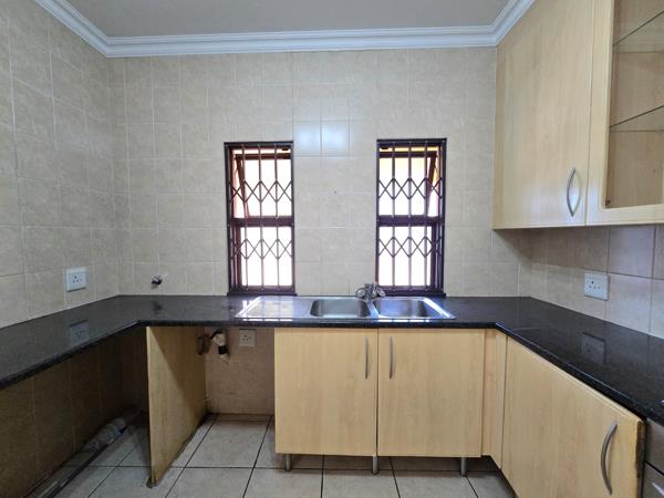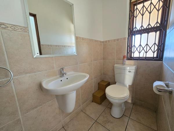 Step inside to a modern kitchen featuring sleek granite countertops, a 4-plate stove with an extractor unit, and dedicated plumbing for both a washing machine and dishwasherideal for hassle-free living. The spacious open-plan lounge is perfect for entertaining and flows effortlessly into your private garden with a built-in braai, perfect for weekend get-togethers. The ground floor also features a convenient guest bathroom with a toilet and basin, adding to the home''s practicality.