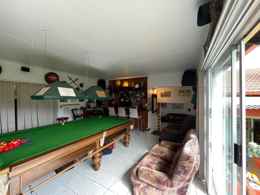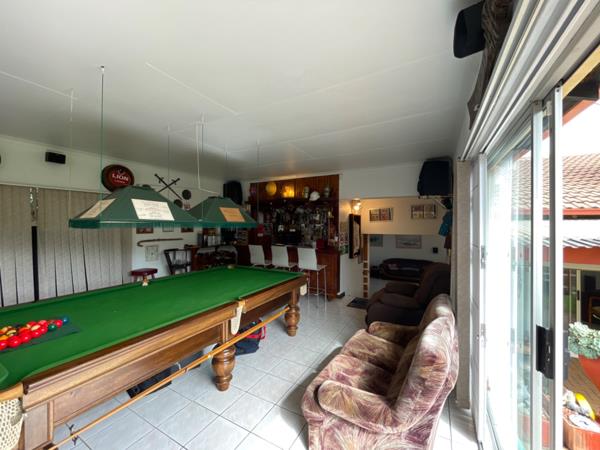 Upon entry, a spacious yard with a well maintained front lawn welcomes you.As you enter, you are greeted by a view of dining room and kitchen. The kitchen and scullery are well spaced for preparing all your hearty meals. This home also offers an entertainment room with a handcrafted Union Billard snooker table leading into the patio, sparkling pool and garden.