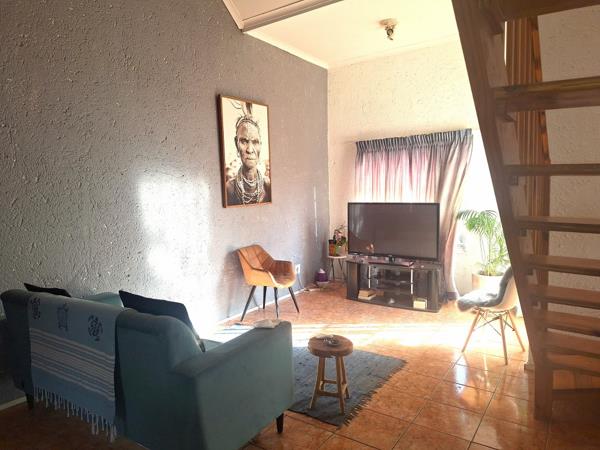 This 2 bedroom loft unit is fully tiled, has a bedroom and bathroom downstairs, next to the open plan kitchen-living area, and upstairs is a 2nd bedroom and loft space for a private lounge or work-from-home office space/study.