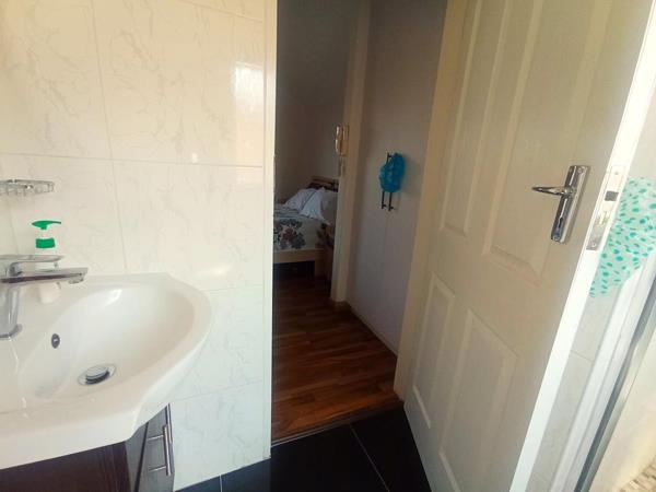 On the ground floor, you''ll find two well-sized bedrooms with laminated and tiled flooring, both equipped with built-in cupboards for ample storage. A stylishly tiled bathroom with a shower, toilet, and basin (featuring a granite vanity) and washing machine connectivity conveniently serves these rooms.
