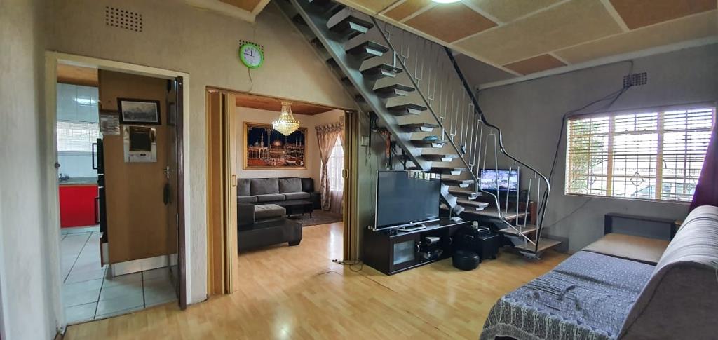 Lovely spacious home offering a lounge with fireplace to warm you on those cold winter days and nights, dining area, family room for social gathering, fully fitted kitchen, 4 spacious bedrooms, 2 bathrooms (main en-suite), domestic quarters, outside laundry area, burglar bars, alarm, tunnel carport for 4 cars, 2 additional parking spaces and garden PLUS A GARDEN COTTAGE WITH A BEDROOM AREA, BATHROOM AND KITCHENETTE. The home borders Robertsham just off Xavier