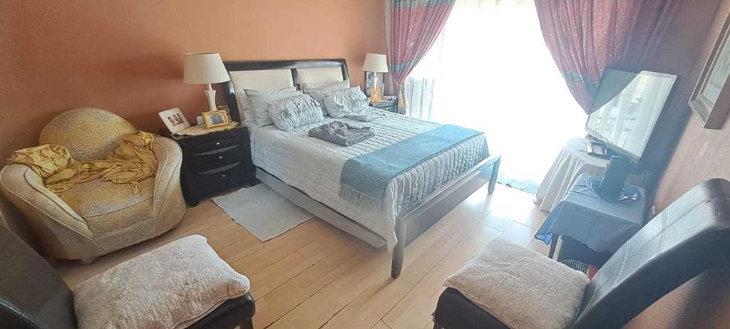 Spacious 3-Bedroom Family Home with Pool Potential in Elandspark - Welcome to this inviting family home in Elandspark, offering both comfort and practicality. Featuring three bedrooms with laminate flooring, the main suite boasts a walk-in closet, modern en-suite with shower and corner bath, and direct access to the patio via a secure Trelligate sliding door.