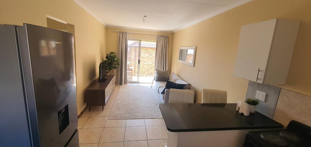 Upon walking into your home you are greeted with an open plan kitchen leading into the lounge and dining area. Further out you have access to a balcony where you can enjoy a sundowner or a braai. The home has two rooms, one being the main bedroom and larger than the second bedroom.