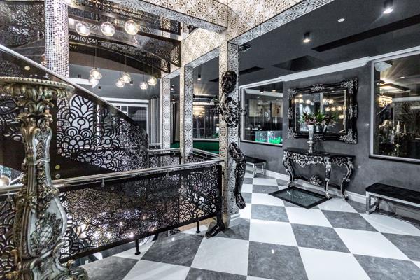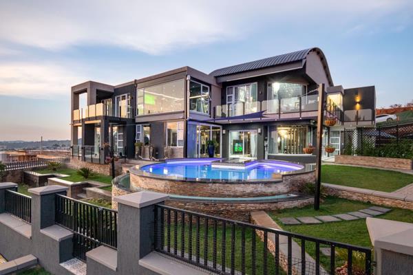 The basement space is an entertainers dream, with a built-in bar, wine cellar that looks up to the floor above via glass panels that are featured throughout the home creating a flow between the levels of the home. Next to the wine cellar is a man-cave with a roulette table. The home office is tucked away offering quiet working space. The cherry on top of this masterpiece must be the home cinema which is themed with art deco & custom-made couches bringing the best of home entertainment to would-be owners. The (sixth) suite is a self-contained flat-let with lounge area & kitchenette with separate entrance. Other features include staff quarters, laundry (with a chute from upstairs) & manicured garden a one-of-a-kind granite topped rim flow swimming pool with a built-in wet bar