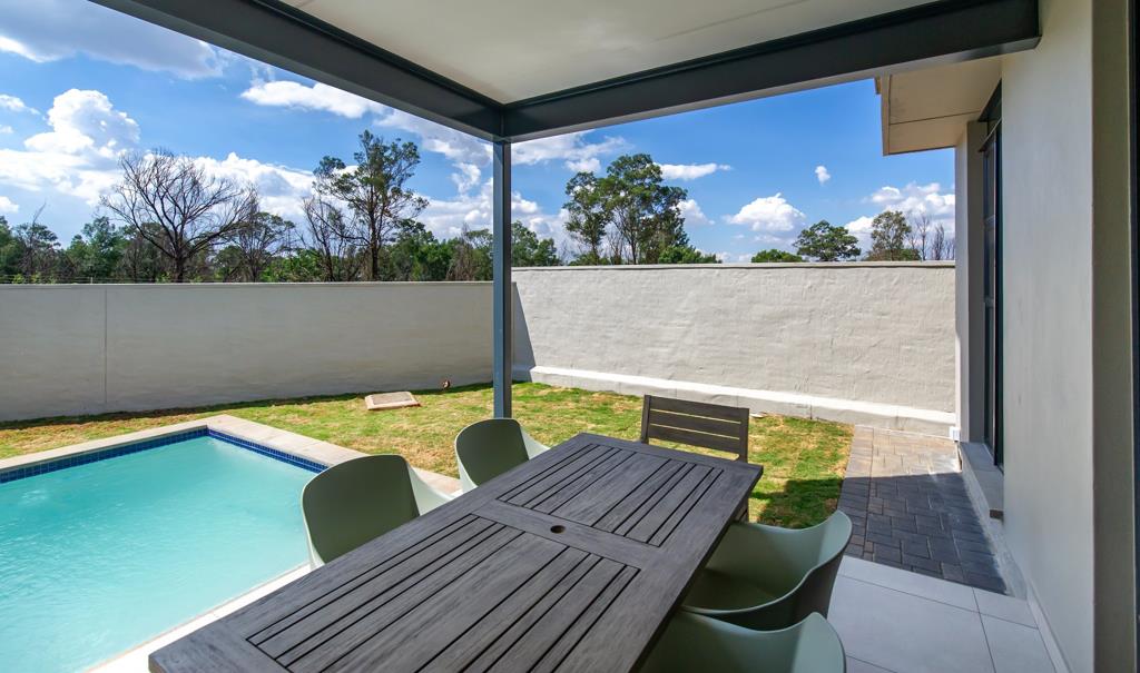 Outdoor living is prioritized with covered patios and expansive 550m private gardens, perfect for relaxation and entertaining. Residents can opt for double garages with two additional visitor parking bays, ensuring ample space for guests. A stunning private pool is also available, providing the luxury of a refreshing swim in the comfort of your own home.