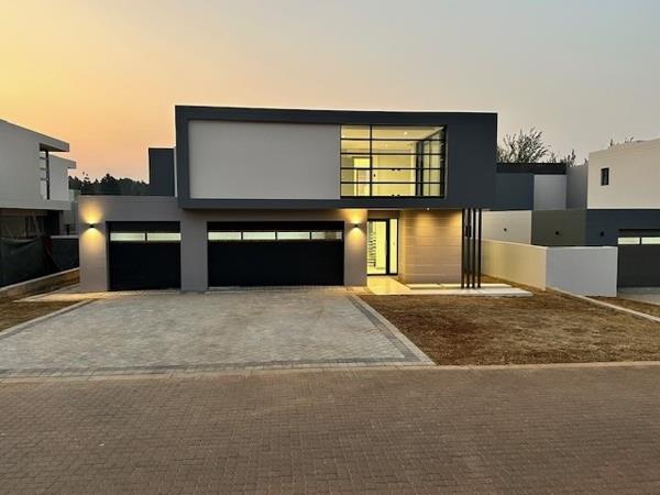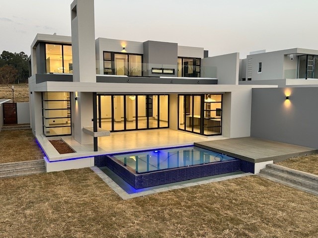 Discover an exceptional residential offering within the prestigious Eye Of Africa Estate in Eikenhof, South Africa. This magnificent property, spanning a generous 849 sqm erf with a substantial 505 sqm under roof, presents a harmonious blend of luxury and practical living. An inviting entrance hall sets the tone, leading into two spacious lounges and a dedicated dining area, perfect for both intimate family moments and grand entertaining. The well-appointed kitchen, complete with a pantry, ensures culinary excellence, while the seamless flow to the outdoor patio and deck creates an ideal indoor-outdoor lifestyle.