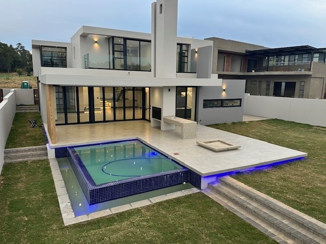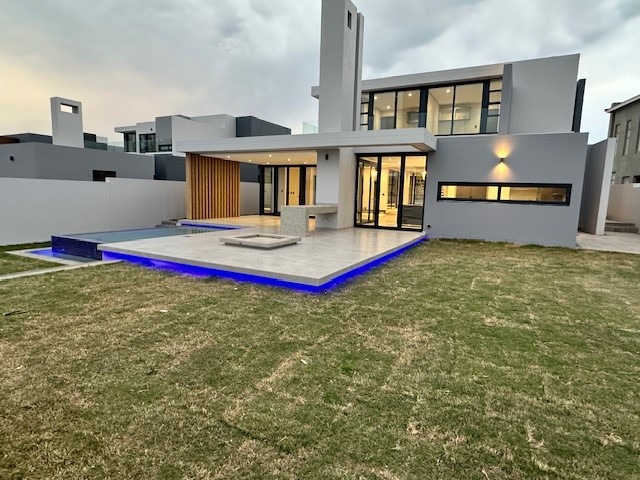 Discover an architectural masterpiece nestled within the esteemed Eye Of Africa Estate, Eikenhof. This striking contemporary residence immediately captivates with its sleek lines, sophisticated facade, and an expansive paved driveway leading to a triple integrated garage. Designed for discerning tastes, the property offers an unparalleled blend of modern elegance and luxurious comfort, promising an aspirational lifestyle in South Africa''s premier golf estate.
