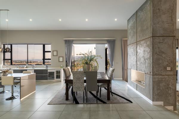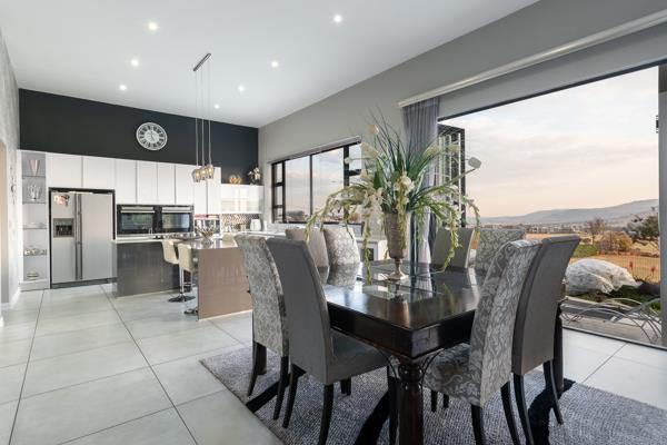 On the main floor, a gourmet chefs kitchen serves as the culinary enthusiasts dream including a gas stove, breakfast nook and scullery. The well sized lounge and dining area have stackable doors opening up onto the undercover patio with a built-in braai, well established garden and sparkling blue swimming pool with direct access to the golf course for your sunset walks. Making it perfect to suit your entertainment desires and to experience peace and tranquillity.