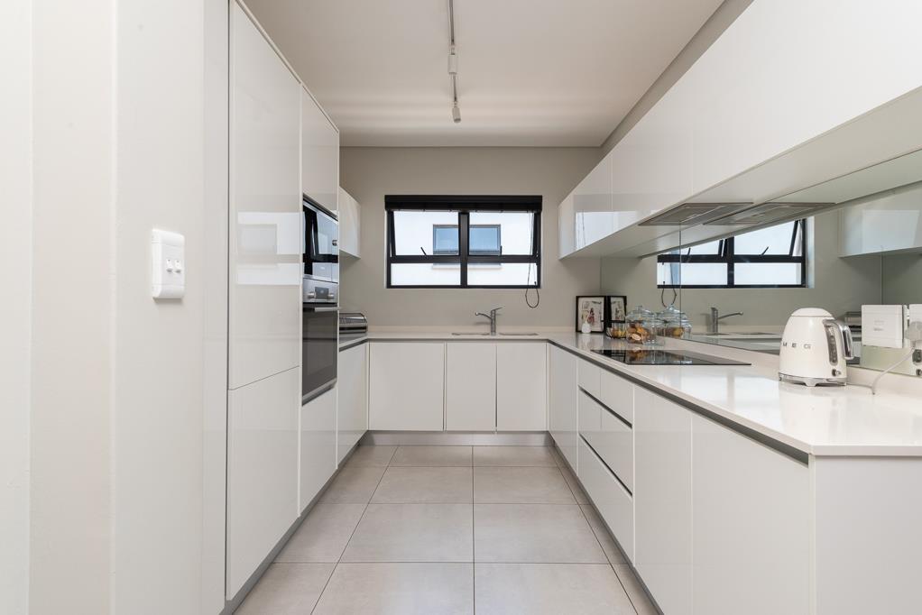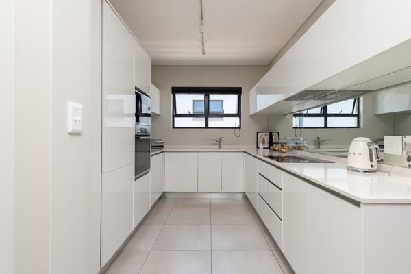 * Sleek, modern kitchen with integrated appliances and pantry.