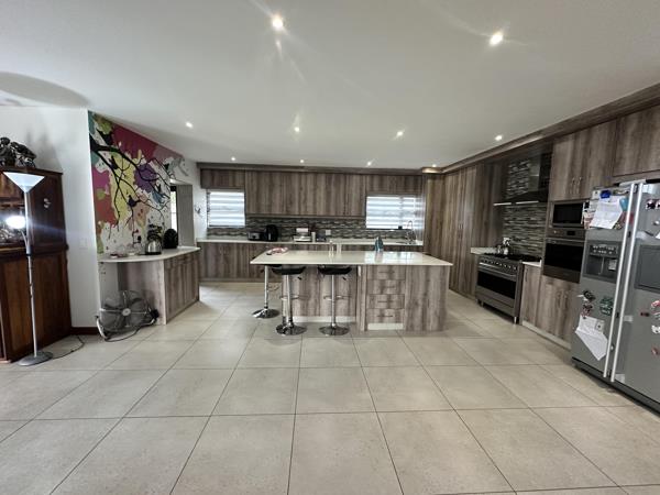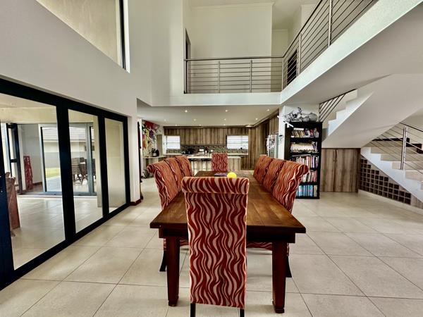 Open-Plan Living: Seamless integration of the lounge, dining area, and a custom-designed bar that extends onto a covered patio with built-in braai ideal for both relaxed family evenings and sophisticated entertaining.