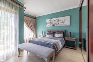 Downstairs in the heart of this lovely home you will find a designer kitchen with stunning granite countertops with modern fittings and modern high end appliances plus plenty of cupboard space. Next to the kitchen is a neat scullery and laundry area that leads you to the back of the house. There is also a private gym with sliding doors leading onto the garden allowing to gym with a view. The lounge and dining room area is open plan that gives you a stunning view of the swimming pool and the landscaped garden. The lounge then leads to the under roof patio and the elegant entertainment area with modern fittings, a built-in braai and built-in speakers - perfect for hosting occasions.