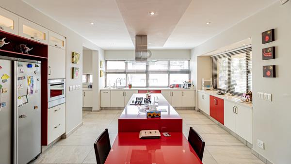 The double story home comprises of a breath-taking entrance with a glass wall giving you a view of the stylish ground floor with a large modern kitchen boasting soft touch cupboard doors and drawers with interior lighting, a gas stove and fitted appliances, with a separate scullery.