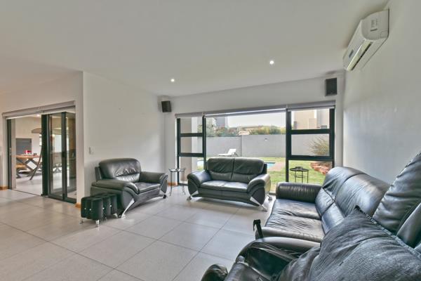 The kitchen is a culinary haven, equipped with quartz stone countertops, a gas hob, built-in oven, microwave, and a convenient hot and cold tap with a filtered water system. Sliding windows offer seamless service to the patio, where you''ll find a prep bowl and a braai area overlooking the lush garden and inviting pool.