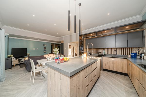 Step inside to a seamless open-plan layout where natural light pours through large aluminium-framed windows and stackable doors. The designer kitchen is the heart of the homeanchored by a bold centre island with pendant lighting, two-tone cabinetry, integrated appliances, and soft wood finishes that exude Scandinavian sophistication. Just off the kitchen lies a built-in study nook, cleverly concealed within custom cabinetryideal for remote work or quiet focus.