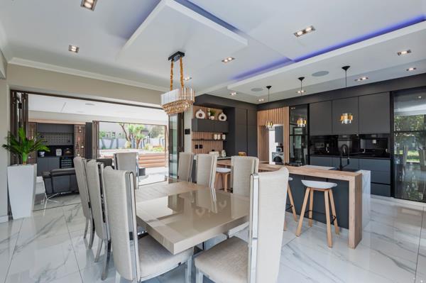 An undercover braai and entertainment area flows onto a large patio, overlooking a landscaped garden, sunken fire pit, and sparkling pool the ultimate indoor-outdoor lifestyle.