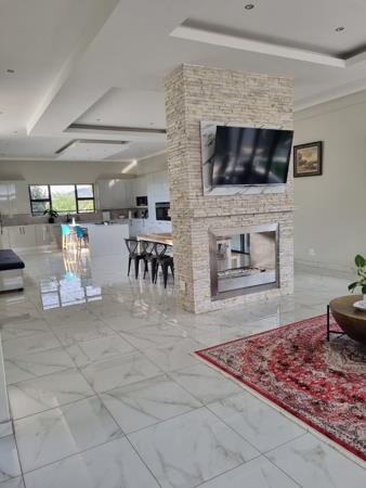 Step into a world of elegance and comfort with this 7-bedroom, 7-bathroom dream home, each bedroom featuring its own luxurious en-suite for total privacy and convenience. The home boasts modern open-plan living spaces, a designer kitchen with gas stove and scullery, and expansive glass doors and windows that fill the house with natural light and showcase breathtaking views.