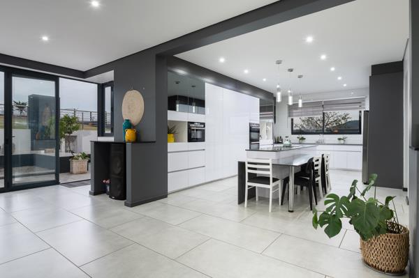 Double volume open plan formal lounge, dining room and stateoftheart Easy Life Kitchen (granite tops, large centre island for food prep and dining and double eyelevel Grundig oven and SMEG Stove Top). Large scullery area. Glass stack doors open up on to outdoor entertainment area with amazing views and infinity pool. Listen to the sounds of nature while enjoying sundowners at the end of a busy day.