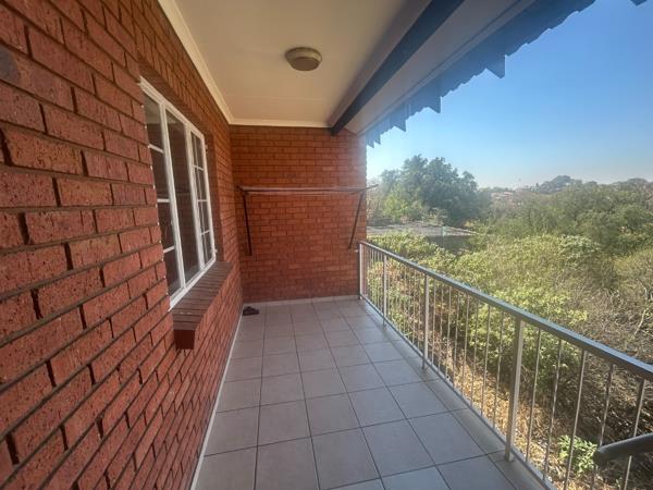 One of the standout features of this apartment is the private balcony, offering expansive panoramic views of the surrounding valley, distant hills, and the Johannesburg cityscape. This outdoor space, complete with tiled flooring and a metal railing, is perfect for relaxation and enjoying the clear South African skies. A satellite dish is already installed for convenience.