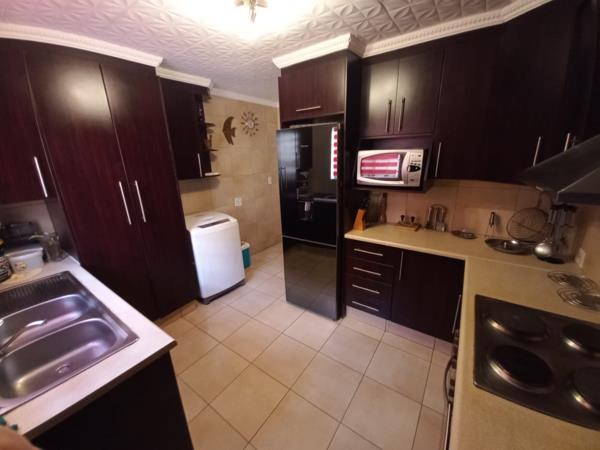 The property boasts Three Bedrooms all with built in cupboards and laminate flooring, One Bathroom tiled throughout with a Bath, Shower, Toilet and Basin. The property also has a well sized, tiled lounge, a fully fitted kitchen with modern finishes as well as a pantry.