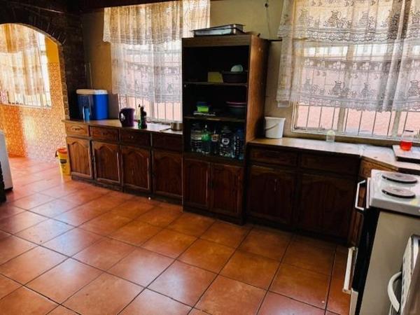 The main house features six well-sized bedrooms, a full bathroom (including bath, shower, basin, and toilet), a separate guest toilet, a spacious fitted kitchen with scullery, and secure parking with a carport and space for additional vehicles. Prepaid electricity ensures easy utility management for both tenants and owner.