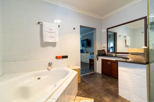 Spacious modern kitchen (granite tops) with a large scullery and pantry. Your entertainment area consists of an indoor sparkling blue pool, indoor braai counter and small stove as well as an elevated entertainment area with sensational views. Triple garages and double carport. Staff quarter and storeroom.