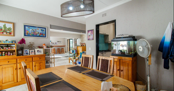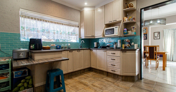 This home offers four spacious bedrooms with built-in wardrobes, tiled flooring, two luxurious bathrooms one of which is an onsuite to the main bedroom and a guest toilet. The stylish kitchen which is the heart of this home has built-in cupboards with granite countertops and a scullery with a washing machine and dishwasher connection. There is an open plan dining room and two lounge areas which lead out onto an enclosed entertainment area with a fitted bar and built-in braai area.