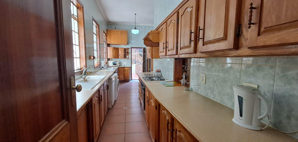 This home offers four spacious bedrooms with built-in wardrobes, wooden flooring, three full luxurious bathrooms of which two are onsuite bathrooms and a guest toilet. The stylish kitchen is the heart of this home with a scullery with a washing machine and dishwasher connection. Open plan dining room and two lounge areas which leads onto an enclosed entertainment area with a built-in braai area.