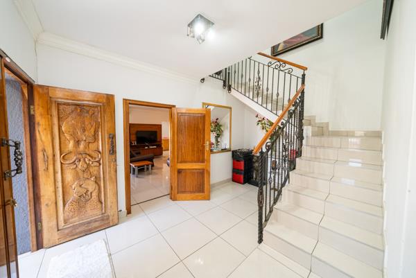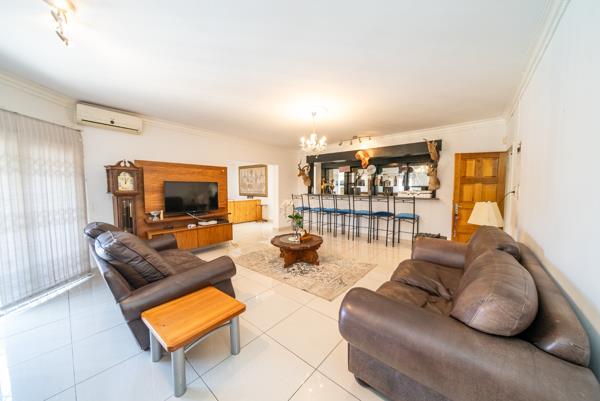 Boasting five bedrooms and four bathrooms (two of which are en-suite) this home is a sanctuary of comfort and elegance. With a grand entrance that opens into two spacious lounges, an elegant dining room, and a chic bar area, perfect for both intimate gatherings and lavish entertaining.