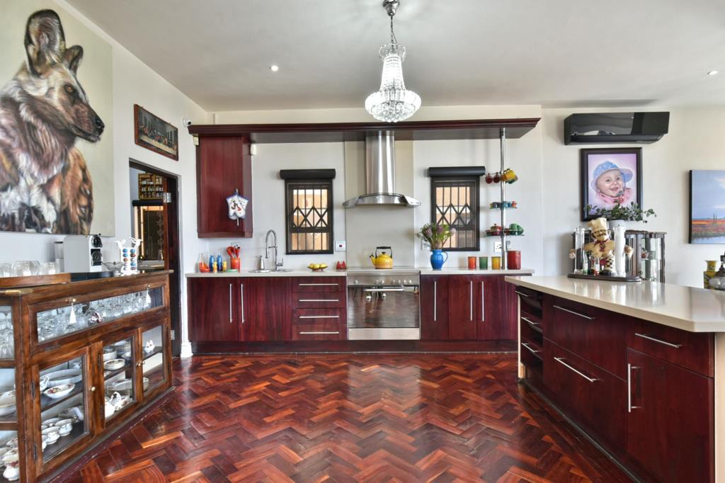 Boasting breathtaking panoramic views, this exquisite home features five expansive, en-suite bedrooms, including two with private balconies. As you step into the lower level, you''re immediately immersed in triple-volume living spaces, where the stunning vistas of the golf course serve as an awe-inspiring backdrop. The open-plan design showcases a sophisticated solid wood kitchen, complemented by a large scullery, and flows seamlessly into both formal and informal lounge areas, as well as an elegant dining room. Every space opens effortlessly onto an entertainers paradise, featuring a spacious patio, sparkling swimming pool, and garden.
