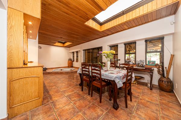 Entertainment is taken to a new level with an enclosed entertainment space featuring a jacuzzi, plus two thatch lapas overlooking a rock-featured swimming pool, creating a tropical escape in the privacy of your backyard. Additional luxuries include a steam room, office, triple garages, staff accommodation, and ample storage spaces.