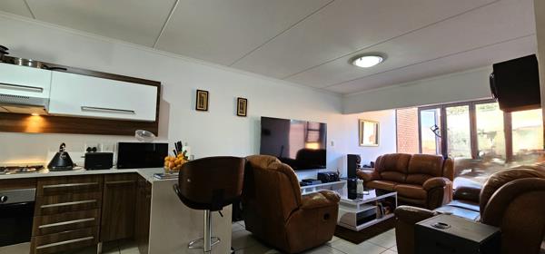 This spacious unit features 3 tiled bedrooms with built-in cupboards and 2 modern bathrooms, including a main en-suite. The open-plan lounge and dining area flow seamlessly into a fully fitted kitchen boasting sleek granite countertops and a gas stove perfect for the home chef. The unit is also equipped with a gas geyser for energy efficiency.