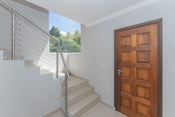 This modern double-story cluster is a must-view, with only 6 units in the complex elegant and controlled. Downstairs leads from the garage into the dining area and lounge with an open plan kitchen and garden, . Guest loo and tiled throughout. Upstairs are 3 bedrooms with laminate flooring, 2 bathrooms, a large pajama lounge with 2 balconies, and a very private and secure unit. The double garage leads into the foyer.