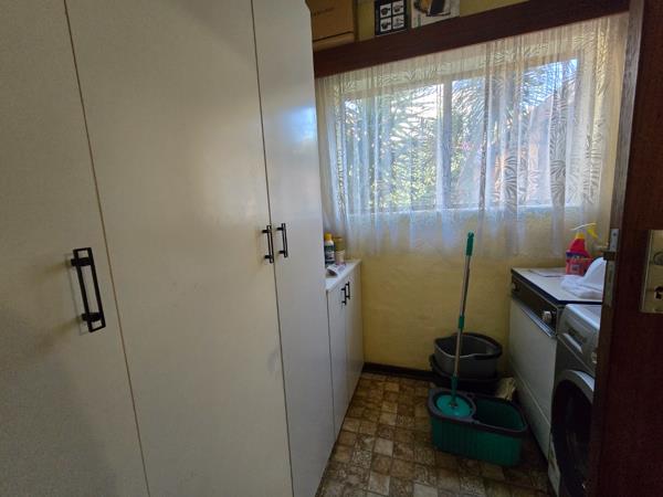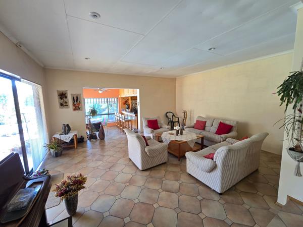 The heart of the home is a generously sized kitchen thats been meticulously cared for, offering ample cupboard space, a 4-plate stove with extractor unit, a dedicated laundry section, and an additional room for fridgesideal for large families or those who love to entertain. Adjacent to the kitchen is a welcoming dining room, which flows effortlessly into the spacious lounge. Perfect for hosting, the lounge leads directly into a cozy bar area featuring a built-in bar, making it an entertainers dream.