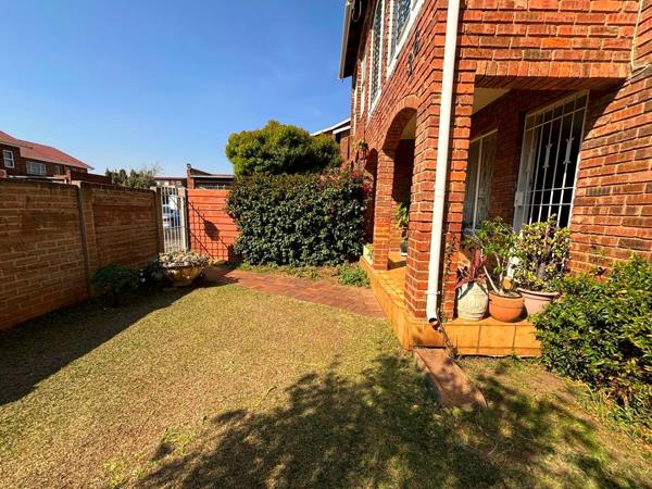 The home offers two and a half bathrooms: one with a bathtub, basin, and toilet, another with a shower and basin, plus a separate loo for added convenience. Enjoy a private backyard garden, and take advantage of the complexs communal swimming pool, braai area and 24-hour surveillance cameras. The unit includes an automated single garage and additional visitor parking spots, ensuring ample space for guests.