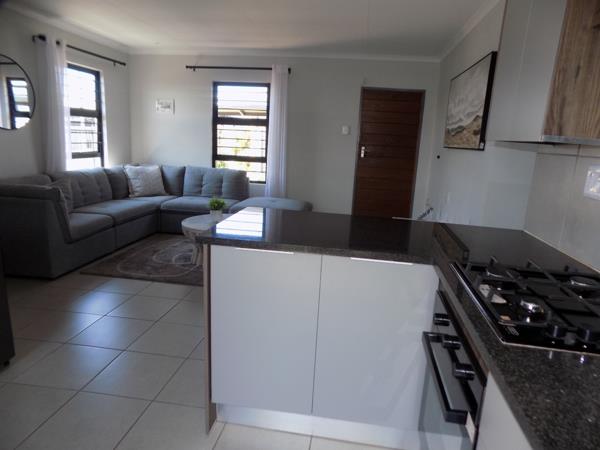This elegant 3-bedroom, 2-bathroom home in Milano Security Estate offers modern living in a secure, family-friendly environment. The spacious open-plan lounge and kitchen provide a welcoming layout, featuring built-in cupboards with granite countertops, a 4-plate gas hob, and an electric oven for efficient cooking.