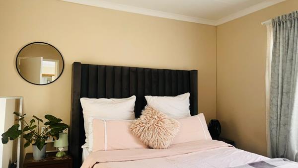 Upon entry, you are welcomed by a spacious open plan lounge and kitchen. The jaw-dropper remodelled open kitchen/living room plan is flawless for a buyer that is curious about what makes Sky City the supreme Alberton. From the attractive lounge entrance to the bedrooms, this house is tiled throughout for a comfortable living offering you a lifestyle of peace and tranquillity. The main bedroom has an en-suite bathroom tiled halfway to the ceiling. It has 2 bathrooms plus shower . The main ensuit has a shower inside and guest room a bathroom . Close to Sky City Mall and Royal Schools are within your reach.