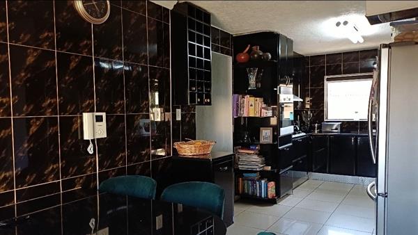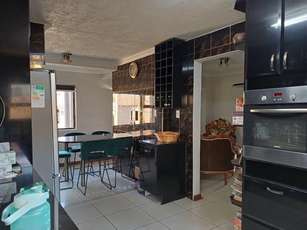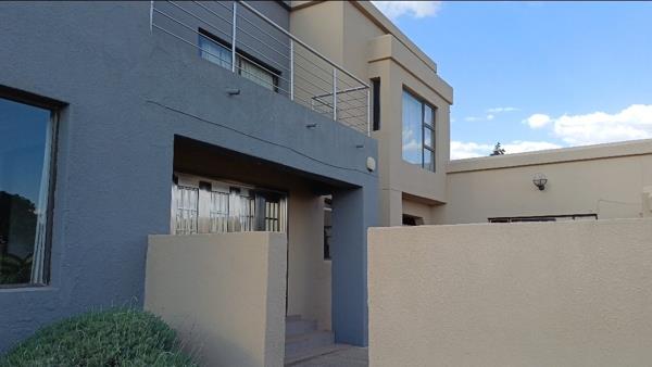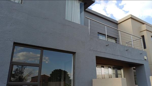 Upstairs boasts built-in cupboards along the passage, a stylish bathroom, a private lounge, and four spacious bedrooms. The master suite includes a full en-suite bathroom. The passage along the bedrooms gives access to a balcony, creating a perfect retreat.