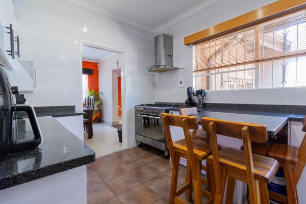 The contemporary kitchen is a chefs dream, featuring a gas stove, elegant granite countertops, and a convenient scullery for all your culinary needs. The entire house is fully tiled, adding a sleek touch and making maintenance a breeze.