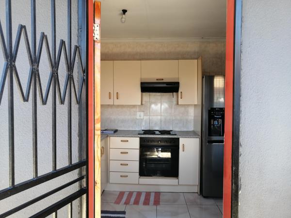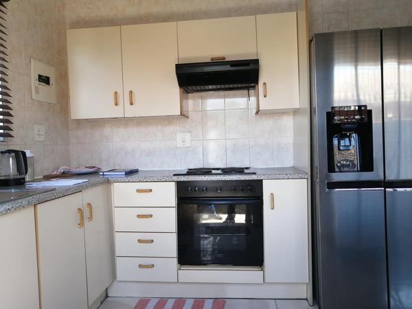 Fully fitted kitchen, open plan lounge and dinning room, tiled floors with a bit of TLC needed on the main bedroom tiles.