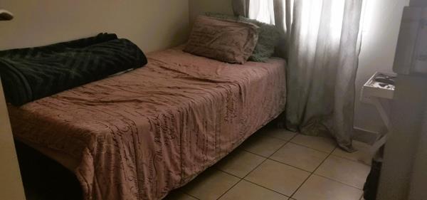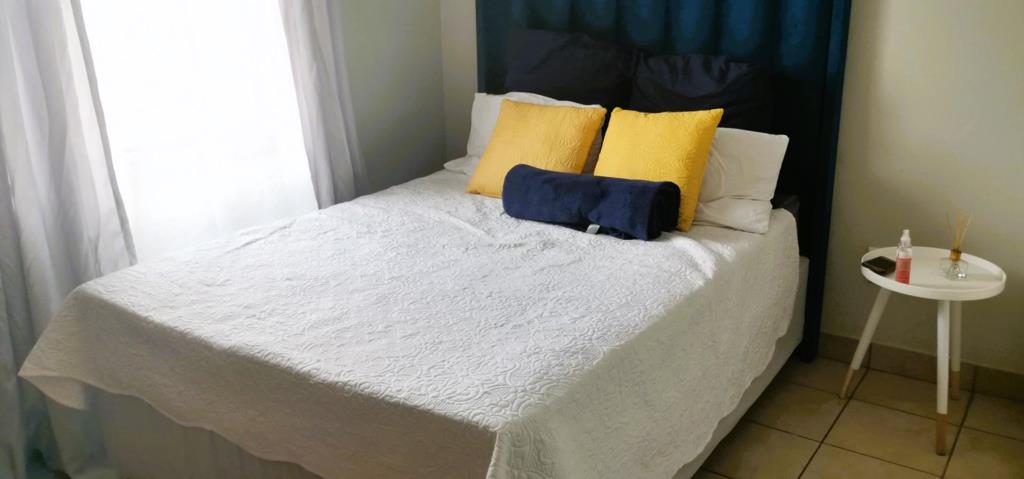 The two spacious bedrooms come equipped with built-in cupboards, providing ample storage space while maintaining a clean, modern aesthetic. Both rooms are fully tiled, adding to the homes low-maintenance, contemporary feel.