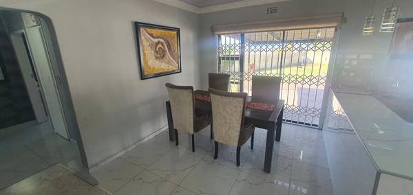 Discover this inviting suburban residence, boasting a freshly painted white exterior and a classic red tiled roof, set on a generous 1097 sqm erf. The property immediately impresses with its neat curb appeal, high perimeter walls and a paved driveway leading to a double garage and ample parking for four vehicles. An access gate and electric fencing ensure a secure entrance.
