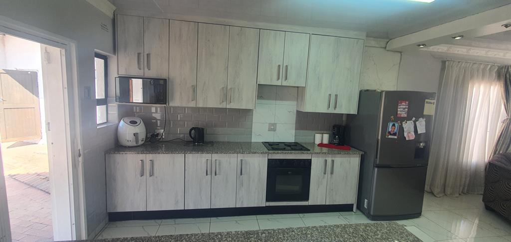 Security is paramount, with comprehensive measures including electric fencing, an access gate, security gates and burglar bars on windows, all within a totally walled perimeter, providing peace of mind in this suburban setting. Pets are allowed, making it an ideal family home.