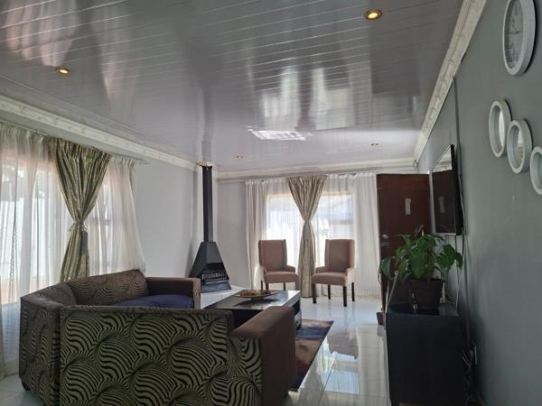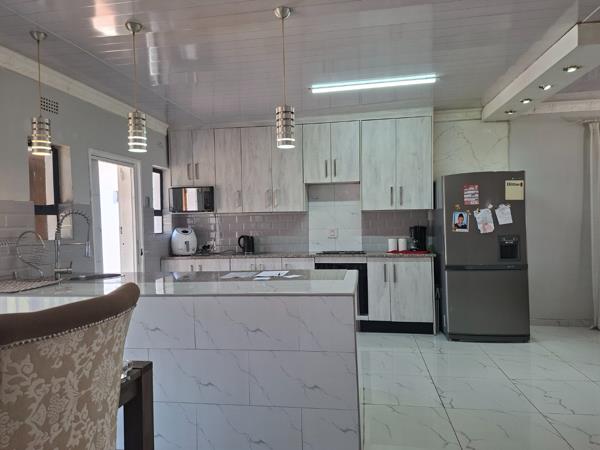 Located in Kibler Park Johannesburg this single-story home offers inviting curb appeal. It features a clean white stucco exterior, a classic red tiled roof, an established lawn and a secure entrance with a security gate providing a welcoming first impression.