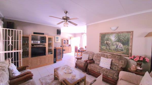 This family home offers comfort, space and excellent features throughout. It boasts three generously sized bedrooms, all with build-in cupboards, including a luxurious main bedroom complete with a private pajama lounge and a main-ensuite bathroom (MES). The home includes a second full bathroom, a tiled lounge fitted with a ceiling fan for added comfort, and a separate dining area perfect for family meals. The fitted kitchen is practical and neatly designed, ideal for everyday use. Outdoor living is a dream with a fully enclosed, tiled gazebo featuring a build in braai-perfect for entertaining-as well as a separate covered and enclosed tiled patio for more relaxed gatherings. Additional features include a helper''s room, a double garage, and double carport, all accessed via a remote-controlled roller gate. the property is fully walled with secure front palisades, offering peace of mind, and is completed by an established garden, adding a touch of greenery and tranquility to this inviting home.