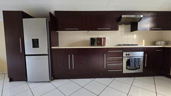 This upstairs apartment is located in a complex called Kyrandia in Kibler Park. It offers a spacious open plan lounge, dining area and kitchen. The kitchen is fully fitted with washing machine connections. It has two spacious bedrooms with built-in wardrobes. It has a full bathroom with toilet and both shower and bathtub. This apartment offers a fireplace in the lounge. It is a safe and access controlled complex.
