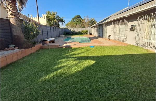 This home offers four well sized bedrooms all fitted with built-in wardrobes and two bathrooms one being an onsuite to the main bedroom. Generously sized kitchen with granite countertops. The lounge has an open plan feel and vibe and has an outside entertainment area surrounded by a beautiful garden, a swimming pool and a built-in braai.
