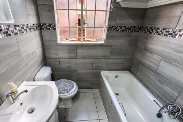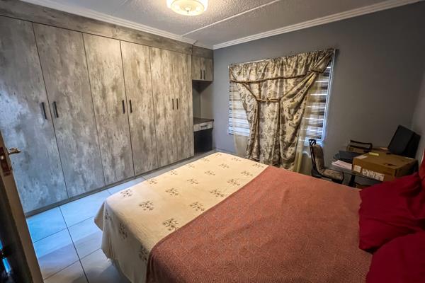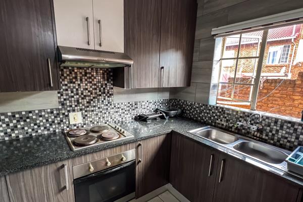 The pristine kitchen is beautifully finished and offers ample cupboard space, stylish splashbacks, and a cozy breakfast nook. The spacious lounge is filled with natural sunlight, making it a warm and inviting space. The TV stand will remain as part of the sale.